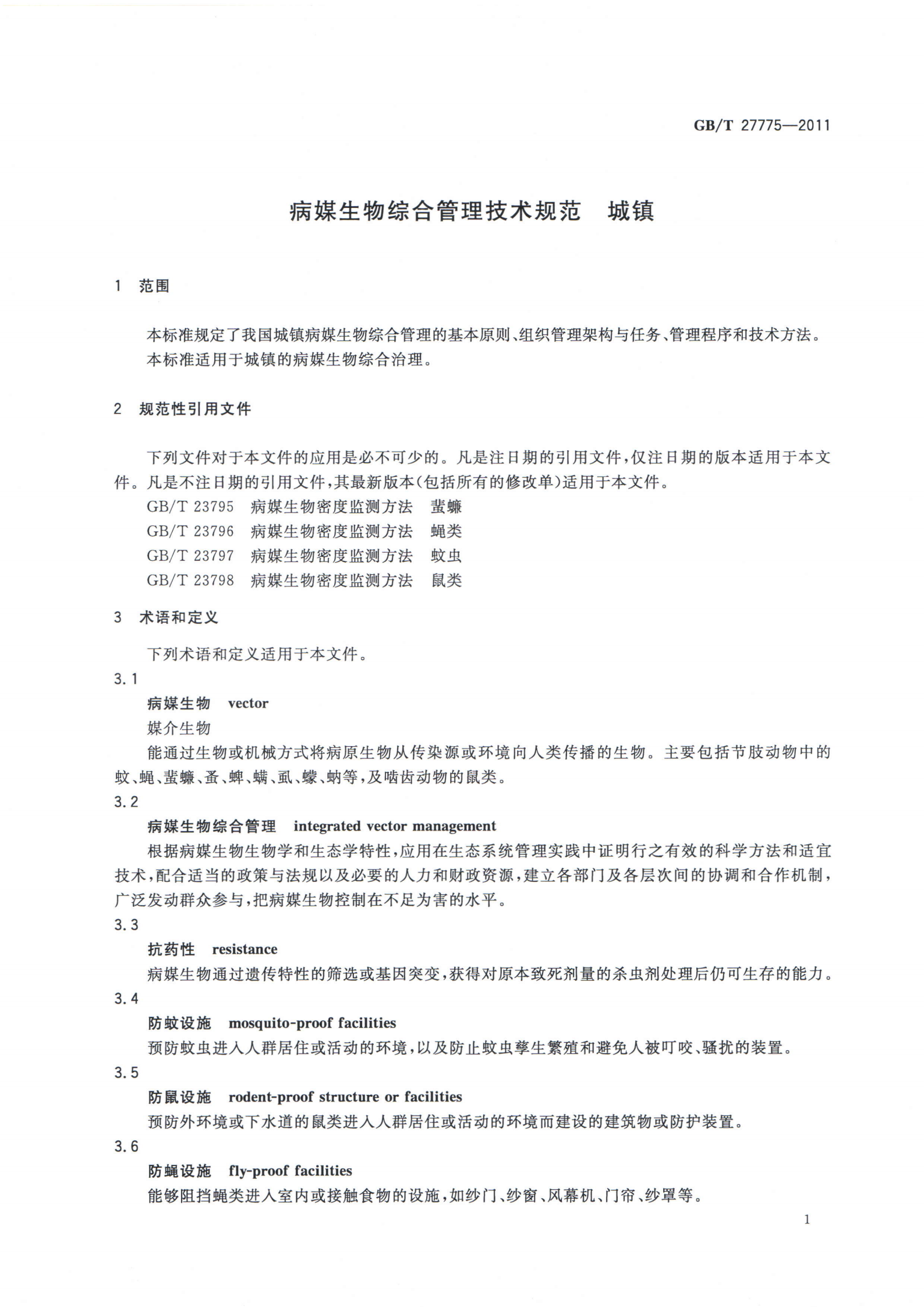 病媒生物综合管理技术规范 城镇
