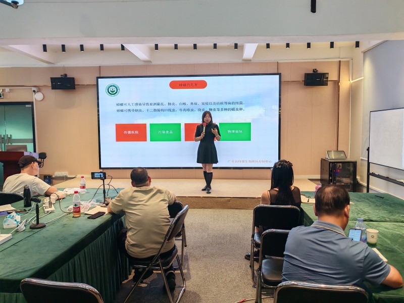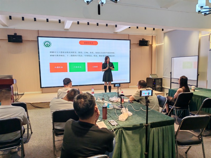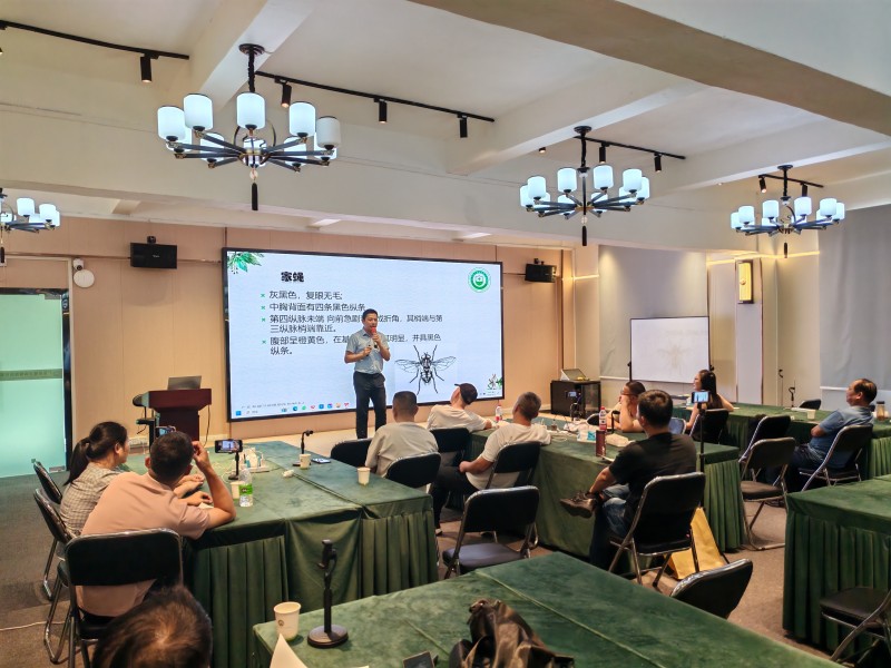 苍蝇繁殖超级快,一生可“生产”500多粒卵,如果发现一只,就说明附近有它们的孳生地,需要及时清理卫生,垃圾日产日清,运用物理清理+化学处理+环境治理,这样才能较快捷的治理虫害,使密度下降,得到有效灭杀。林老师幽默风趣地分享着苍蝇的那些事儿,学员们也是乐此不疲。