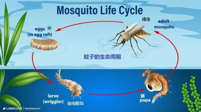 蚊子的一生中,90%的时间都在水中度过。从卵到幼虫(孑孓),再到蛹,蚊子生命的前三个阶段完全离不开水。