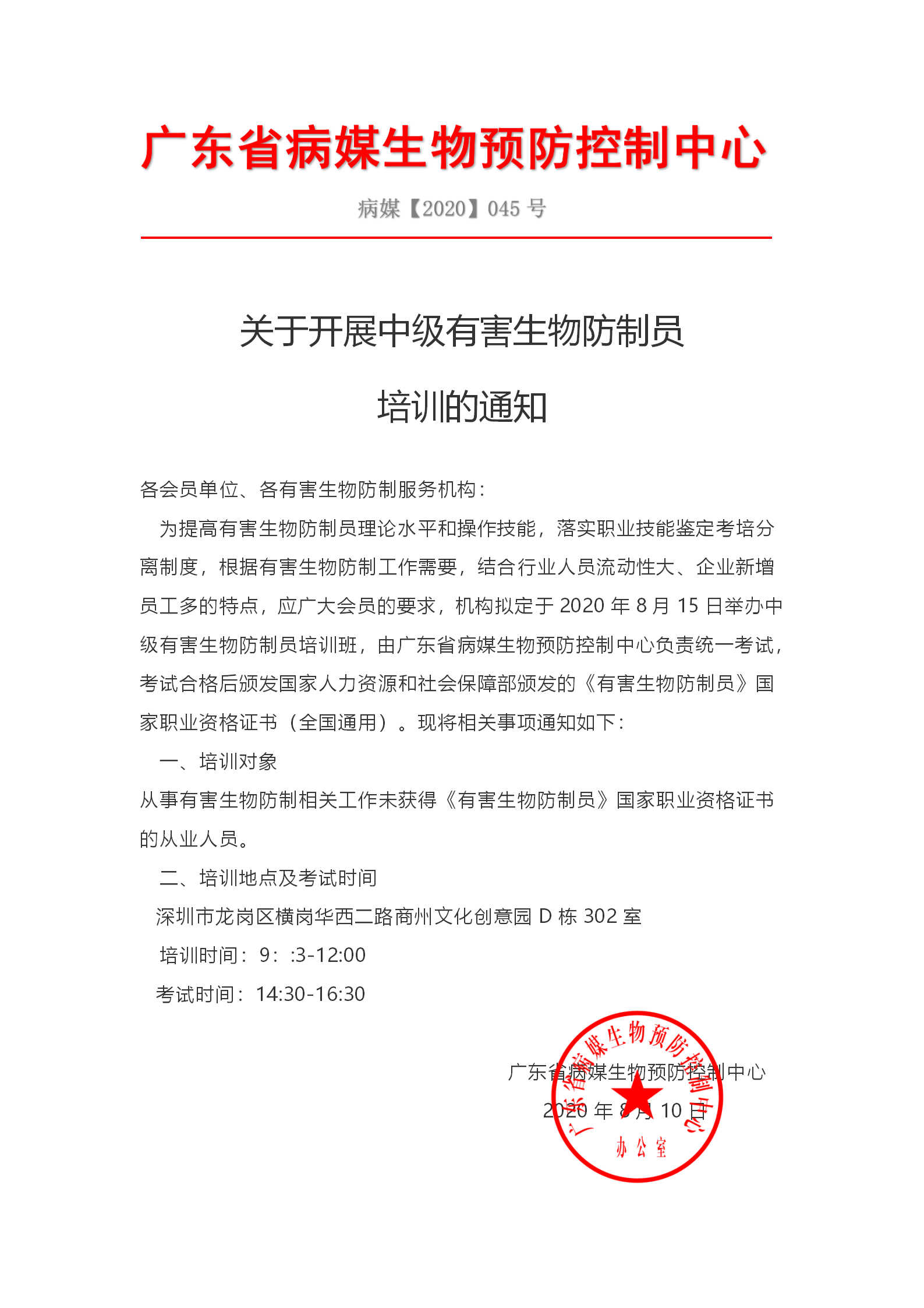 关于广东省病媒生物预防控制中心 举办林业有害生物上岗证培训的通知